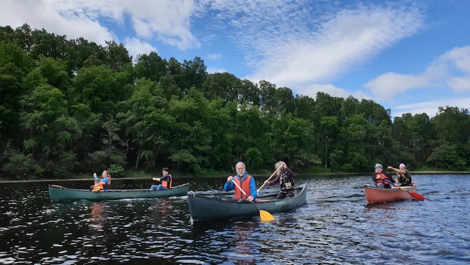 The SUMMER SOLSTICE MEET was originally conceived by our first President, Iain Smart, as a suitable Scottish alternative to outings on the East Greenland coast. Co-founder Phil Gribbon writes ‘His proposal was that the Club should not waste the long daylight hours of the solstice and … should avail themselves of what was offered on their doorsteps and explore the innermost corners of their own country.‘ Initial solstice treks crossed the ‘high tundra’ of the Cairngorm plateau to the Spey valley. A mix of bothies and climbing club huts were destinations for subsequent treks. Although this tradition lapsed for a number of years it was revived in modified form with the Simpson family generously hosting a Saturday evening barbecue at their home near Kincraig. Arrival by canoe has become popular given the more extreme age range (young and old!) of our membership in recent years. Adventurous journeys to the Solstice Meet are strongly encouraged and the weekend offers opportunities for outdoor activities with other club members as well as a sociable bbq.